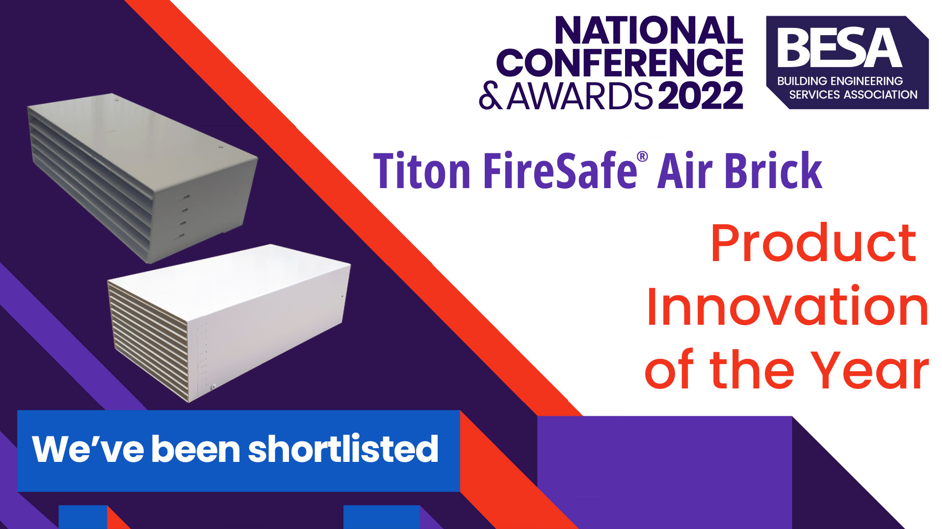 The Titon FireSafe® Air Brick has been shortlisted in the Product Innovation of the Year Award Cate…
