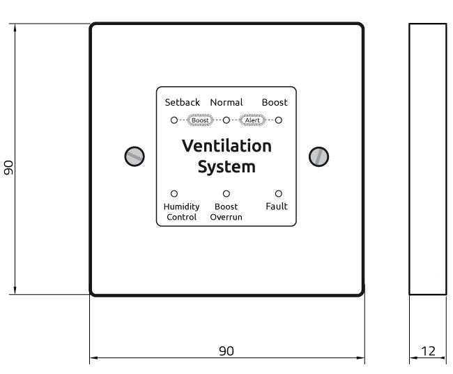 Dimensions: 90mm wide x 90mm high x 12mm deep