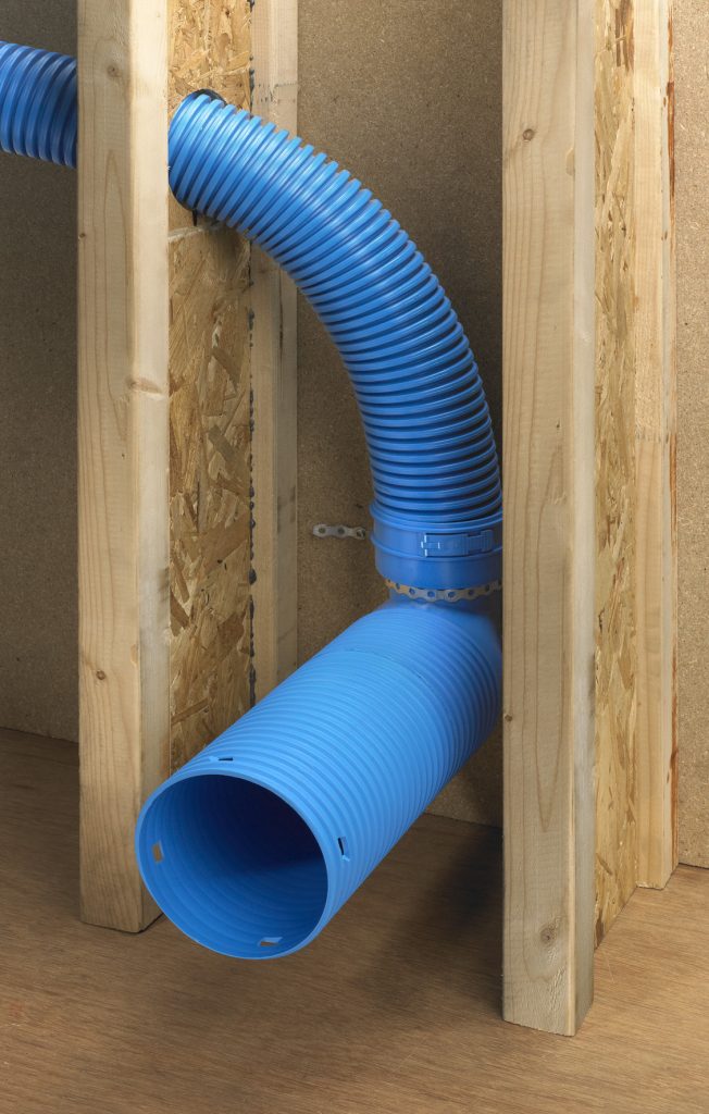 Semi–Rigid ducting designed for domestic ventilation systems is modern, clean, leak-free and easy to install. It is an alternative to solid plastic ducting that has traditionally been used to move air around a home. In contrast, semi-rigid uses a radial approach that allows for smaller duct diameter making it much easier to accommodate in tight spaces, especially in combination with the duct flexibility.