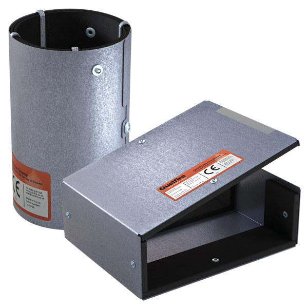 The QRS Intumescent Fire Sleeves consist of a flexible galvanised steel shell containing graphite based intumescent material.