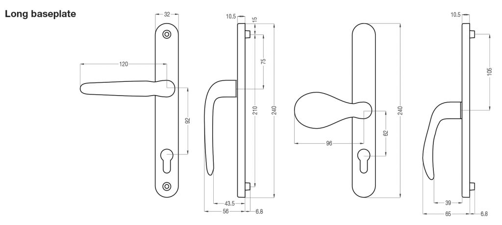 | Overture DH-Z or DH-A 240 L1/L1 (Door Handle Long Baseplate Lever1/Lever1) | 40-70 | TN8102 | TN8106 |