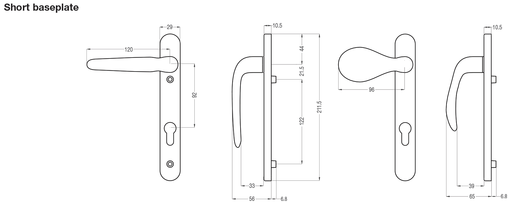 | Overture DH-Z or DH-A 210 L1/L1 (Door Handle Short Baseplate Lever1/Lever1) | 40-70 | TN8100 | TN8104 |