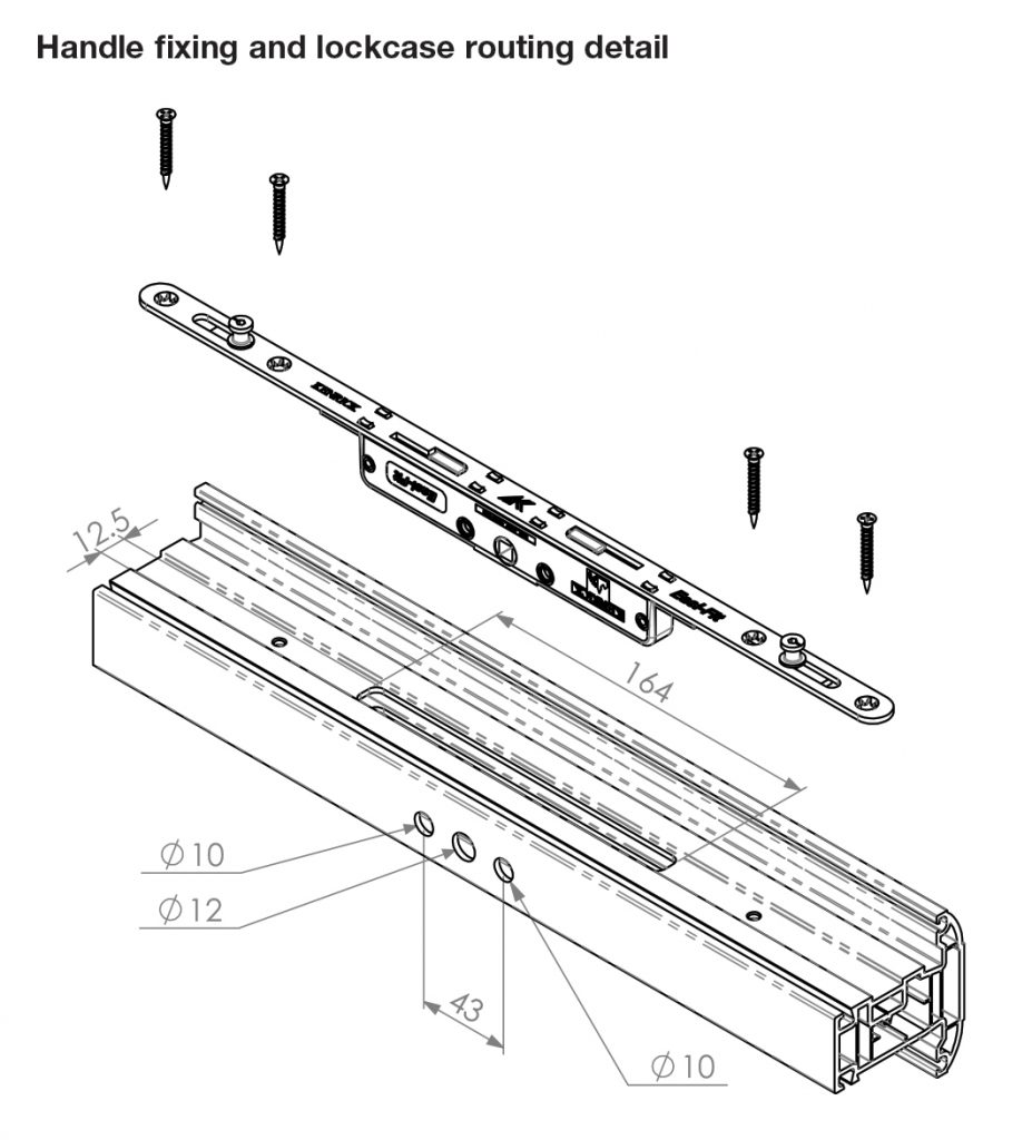 No cropping required, six bar sizes cover sash rebates from 200mm up to 1200mm. The faceplate has rounded ends to help avoid damage to the profile surface during fabrication.
