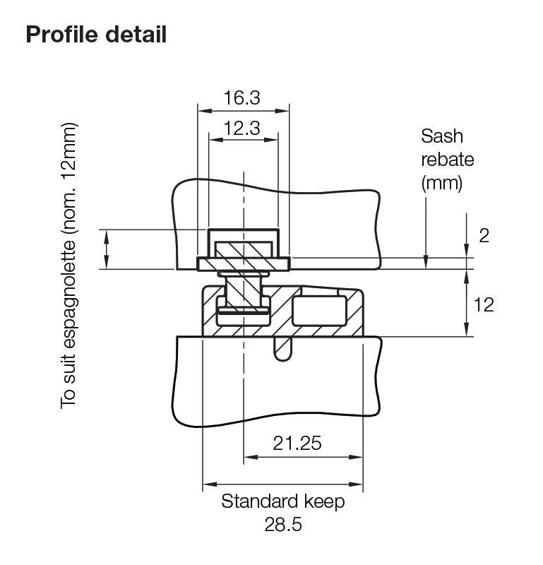 The Maco Inline Espagnolette is compatible with all standard espag handles with 43mm fixing centres with a 7mm square spindle.